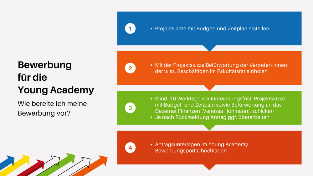 Die Projektförderung der Young Academy soll insb. auch Vorarbeiten für einen Drittmittelantrag ermöglichen.